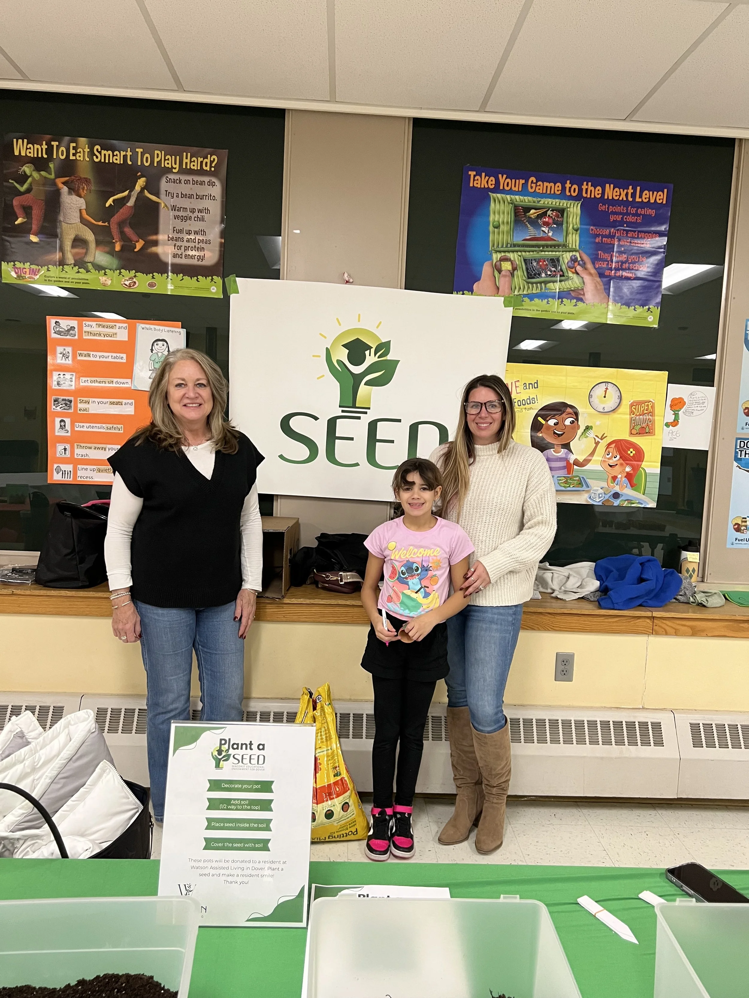 Children at SEED’s table decorated plant pots and planted seeds for residents at Watson Assisted Living, learning how small acts of kindness can brighten someone’s day.